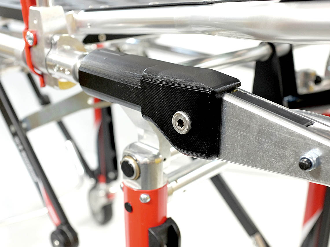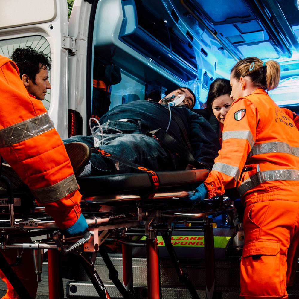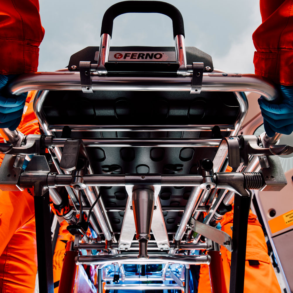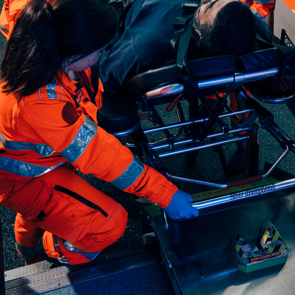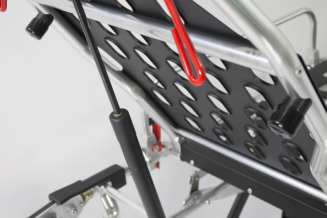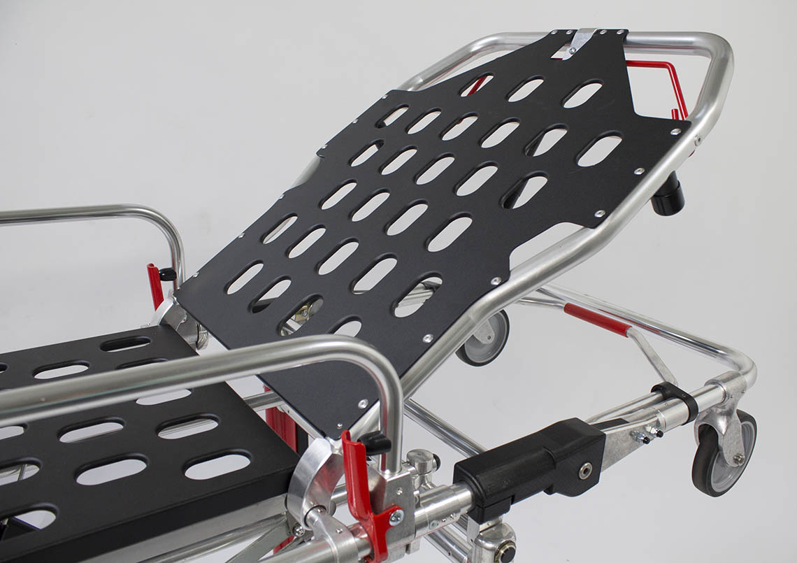 È facile da alloggiare in ambulanza. La barella può essere alloggiata facilmente all'interno del mezzo di soccorso e bloccata in modo sicuro con il sistema di bloccaggio certificato SLAM.