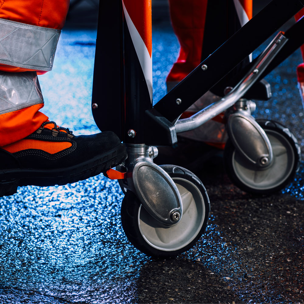 È sicura per il paziente e per gli operatori. Struttura rinforzata, telaio heavy load antishock, piani rigidi, spondine abbattibili, freno di sicurezza. Questi elementi ti offrono la massima affidabilità durante il trasporto e ti permettono di eseguire manovre salvavita.