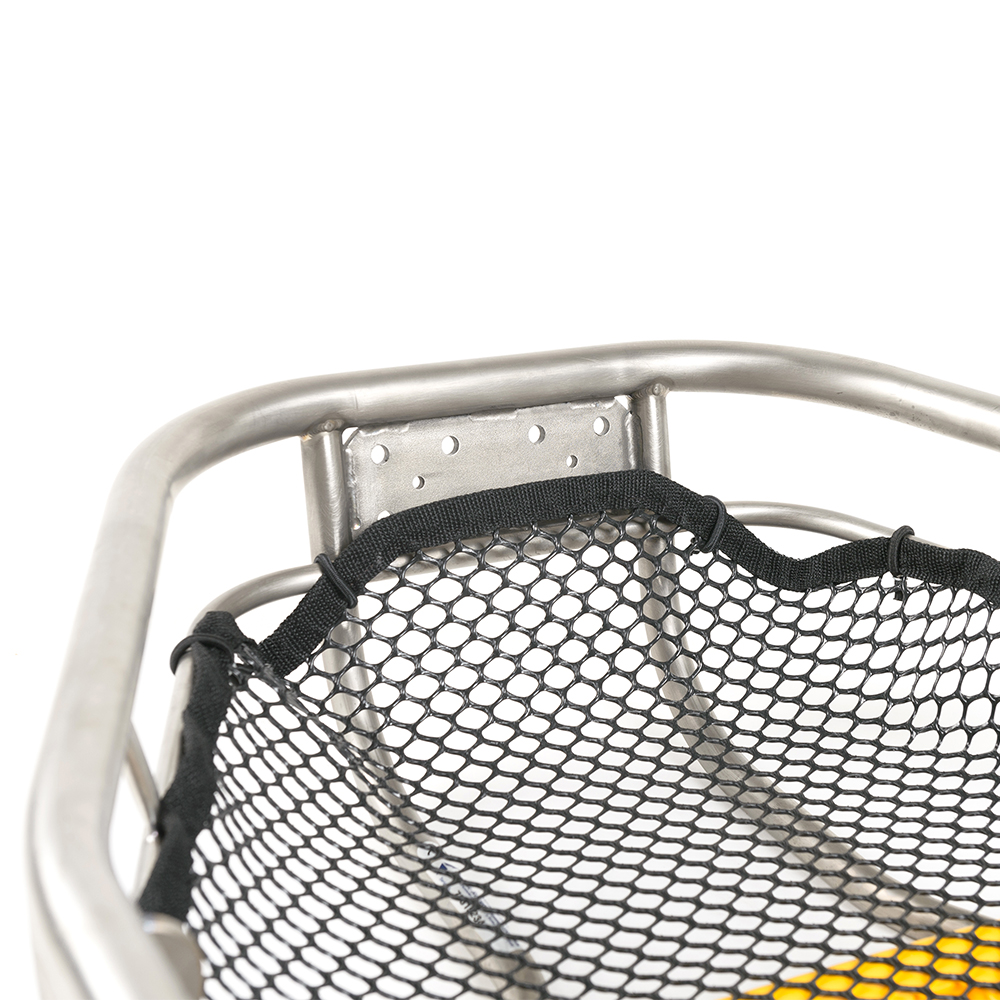 È resistente. Non farti ingannare dal peso minimo: Titan-T è super resistente e ha una capacità di carico di 1.134 kg. La struttura è tutta in titanio con saldature TIG; la rete di sostegno in polietilene ad alta densità non teme ambienti ostili, come quelli delle industrie pesanti o del trasporto navale.
