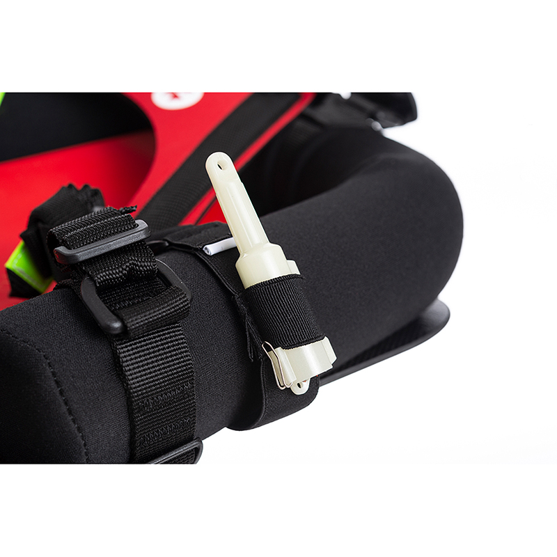 Set completo di galleggianti, cinture con fibbie fast clip e codice colore, anelli di movimentazione e luce d'emergenza. |